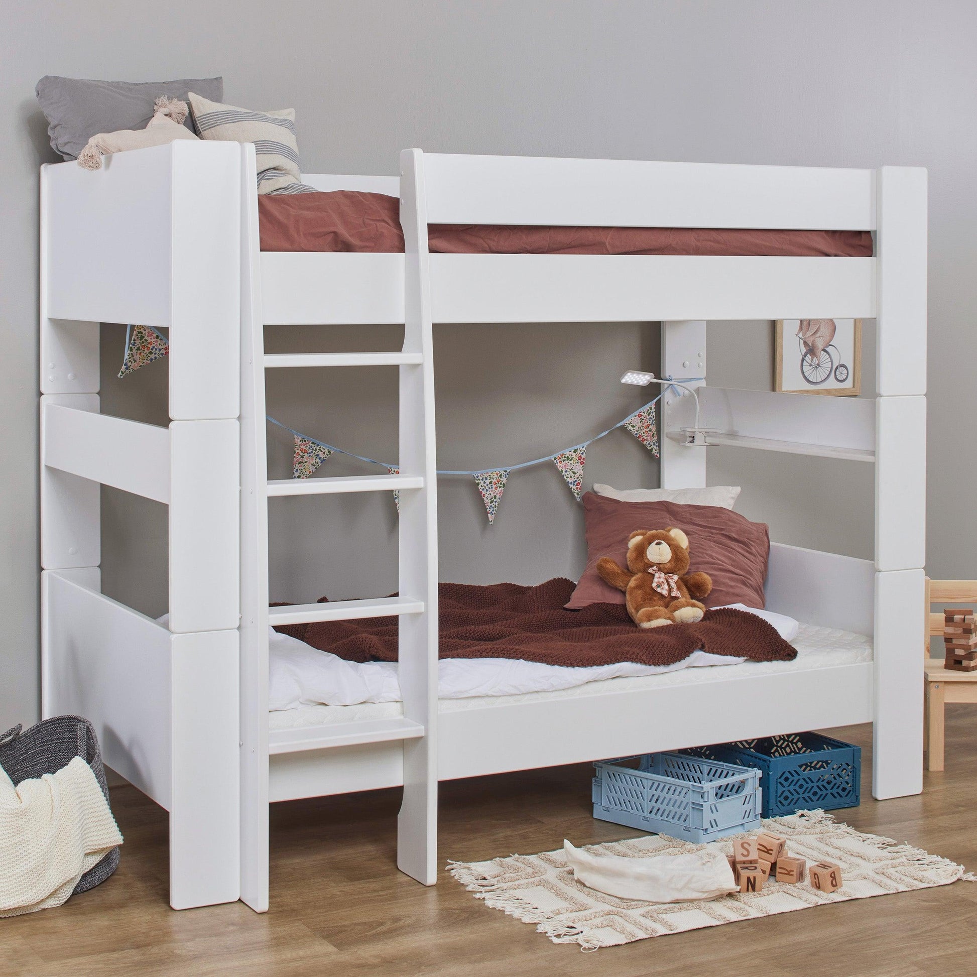 The Hoppekids Steens For Kids Bunk Bed offers two cozy sleeping spaces in one stylish white frame — perfect for siblings, sleepovers, or shared rooms.